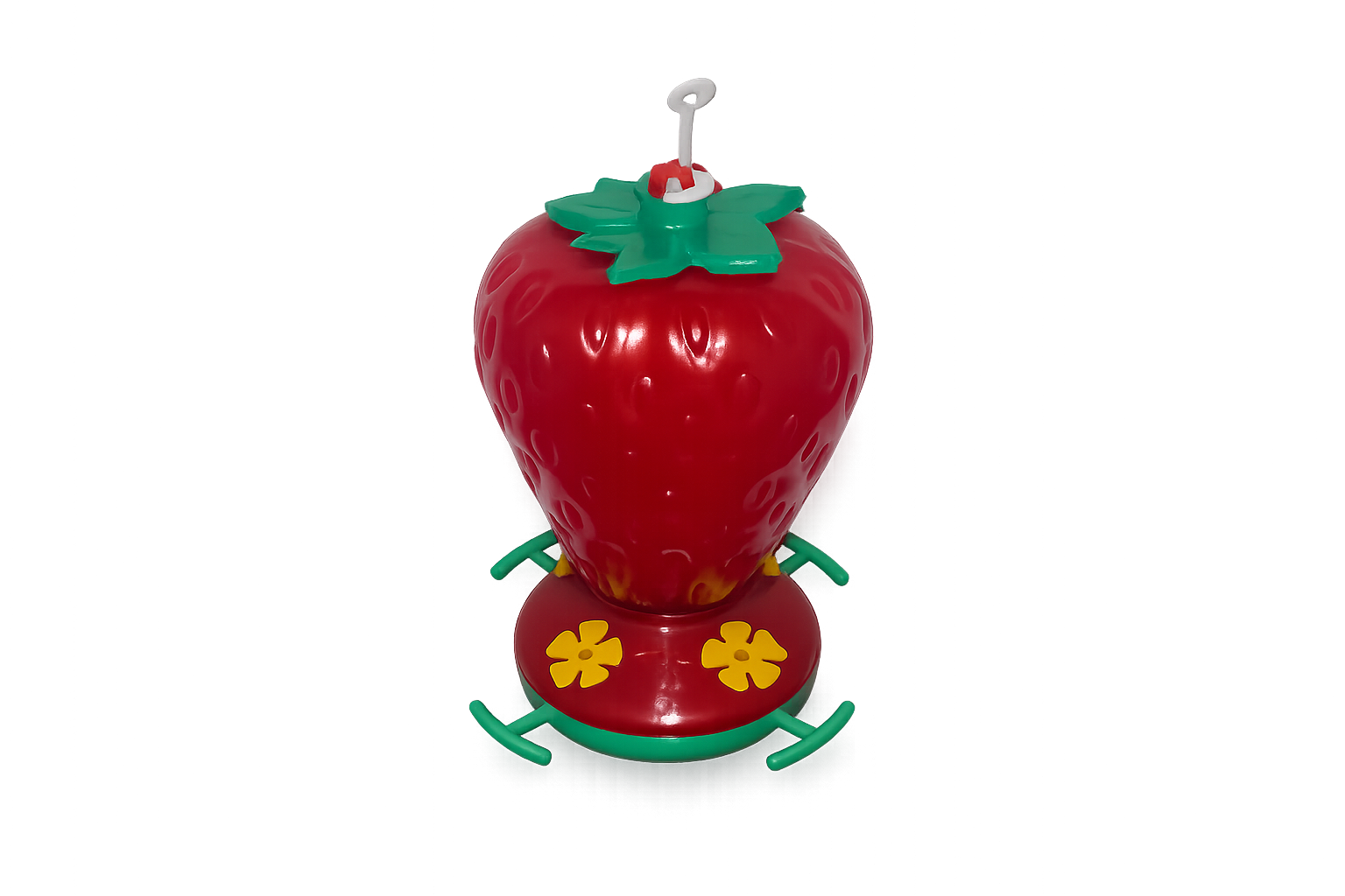 Bebedero para colibrí con diseño en forma de frutilla, ideal para atraer estas aves de manera natural y decorativa a tu jardín o balcón. Su estructura permite ofrecer néctar de forma segura, con múltiples puntos de acceso y fácil limpieza. Fabricado con materiales resistentes para uso en exteriores.
