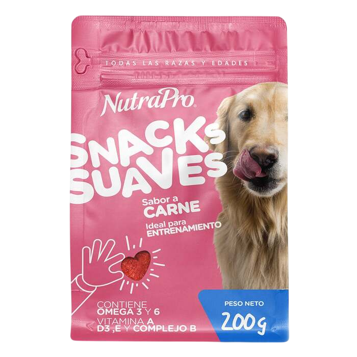 Snack suave para perros de todas las razas y edades, con delicioso sabor a carne que lo hace altamente palatable. Su textura tierna facilita la masticación, ideal para entrenamiento o recompensa diaria. Enriquecido con Omega 3 y 6, vitaminas A, D3 y E y complejo B, contribuye a una piel saludable, pelaje brillante y bienestar general de tu mascota.