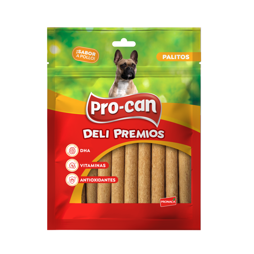 Palitos sabor pollo para perros, perfectos como premio o snack diario. Ayudan a limpiar sus dientes, reducir el estrés y mantenerlo entretenido con un sabor irresistible que le encantará.