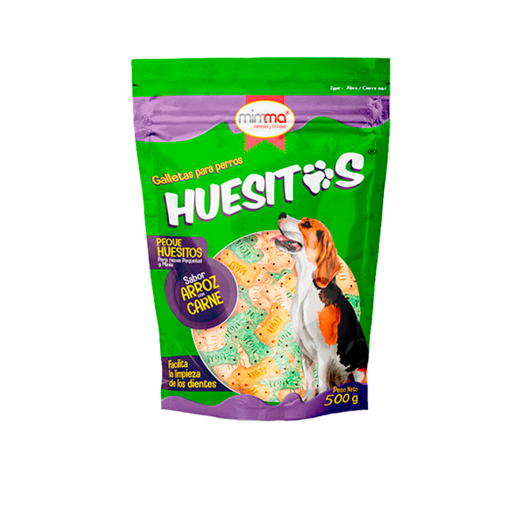 Huesitos Mimma Peque, deliciosas galletas para perros perfectas como premio diario. Crujientes, nutritivas y llenas de sabor, ayudan a mejorar su digestión y mantenerlo sano, activo y feliz.