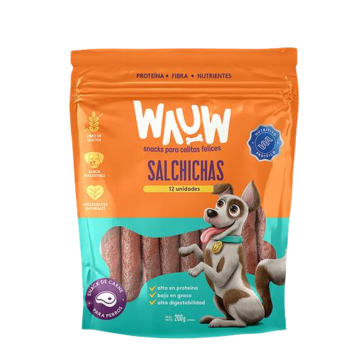 Snack masticable para perros con forma de salchicha, elaborado con ingredientes de origen animal que aportan proteína y energía. Ideal como premio o recompensa, satisface el instinto natural de morder mientras mantiene a tu mascota entretenida. Su textura y sabor lo hacen altamente palatable, siendo perfecto para perros de todas las razas y edades.
